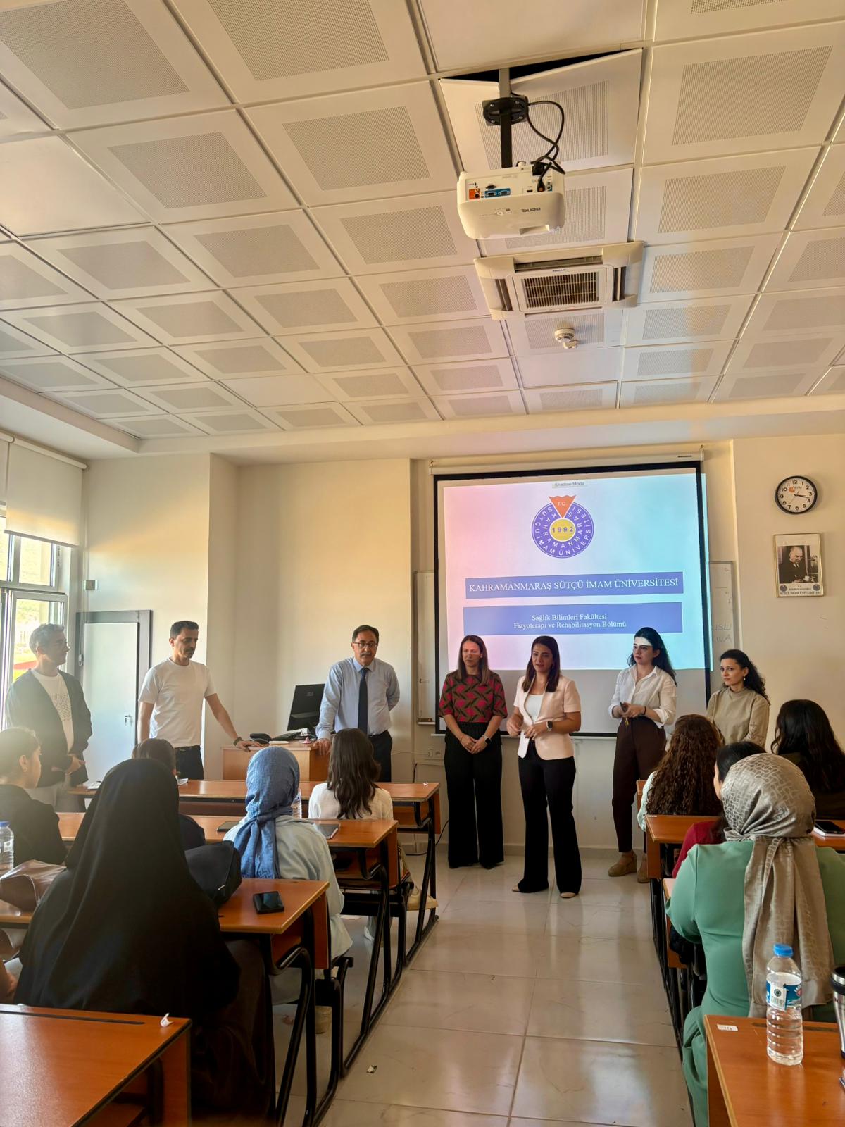 2025-2026 Eğitim Öğretim döneminin başlaması ile 1. sınıflarımızın oryantasyon eğitimini gerçekleştirdik. 02.10.2025  15.00 tarihinde Sağlık Bilimleri Fakültesi Fizyoterapi ve Rehabilitasyon Bölümü ED-K1-5 dersliğinde verilen eğitim, Sağlık Bilimleri Fakültesi Dekanımız  Prof. Dr. İsmail Gürkan ÇIKIM, 1.sınıf danışmanı Dr.Öğr. Üyesi Asiye UZUN ve bölümün öğretim elemanları ile birlikte gerçekleştirildi.